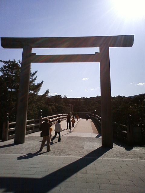 の初日出はずれます。この日はすごい風で歩くのも大変でした。 ここは伊勢神宮内宮です。皇室の祖先をまつり正式には、たんに「神宮」と言います。