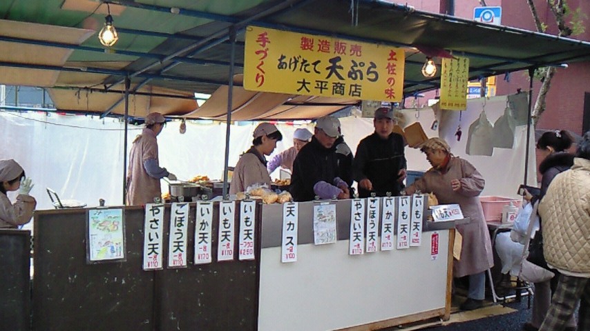 行ったら必ず食べて貰いたいのが、市の途中にある芋の天ぷらです。